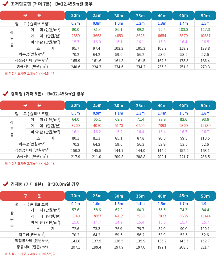 감소로 구조적으로 안전성 우수 - 강재와 콘크리트를 합성시켜 단면강성을 높임으로써 장지간, 저