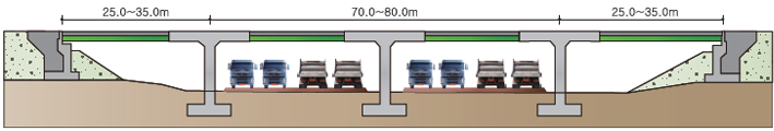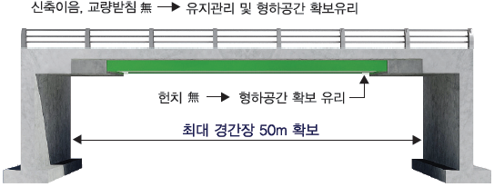 - 교량받침 및 신축이음이 없어 유지관리 용이
