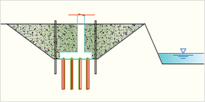 내부힌지 단순보로 부모멘트를 감소하고 상부빔을 벽체와 콘크리트로 일체화시켜 기초단면을 최소화하고