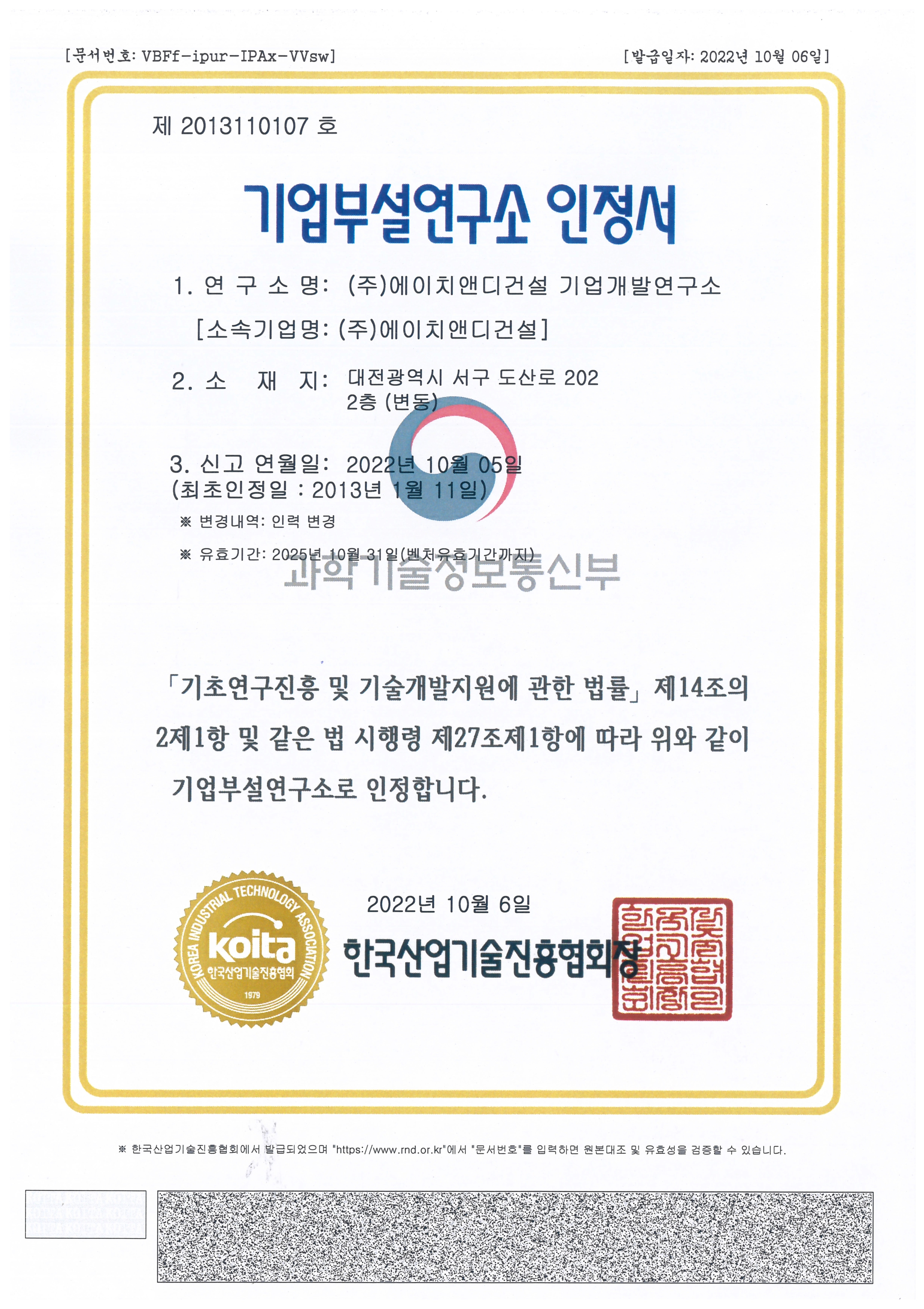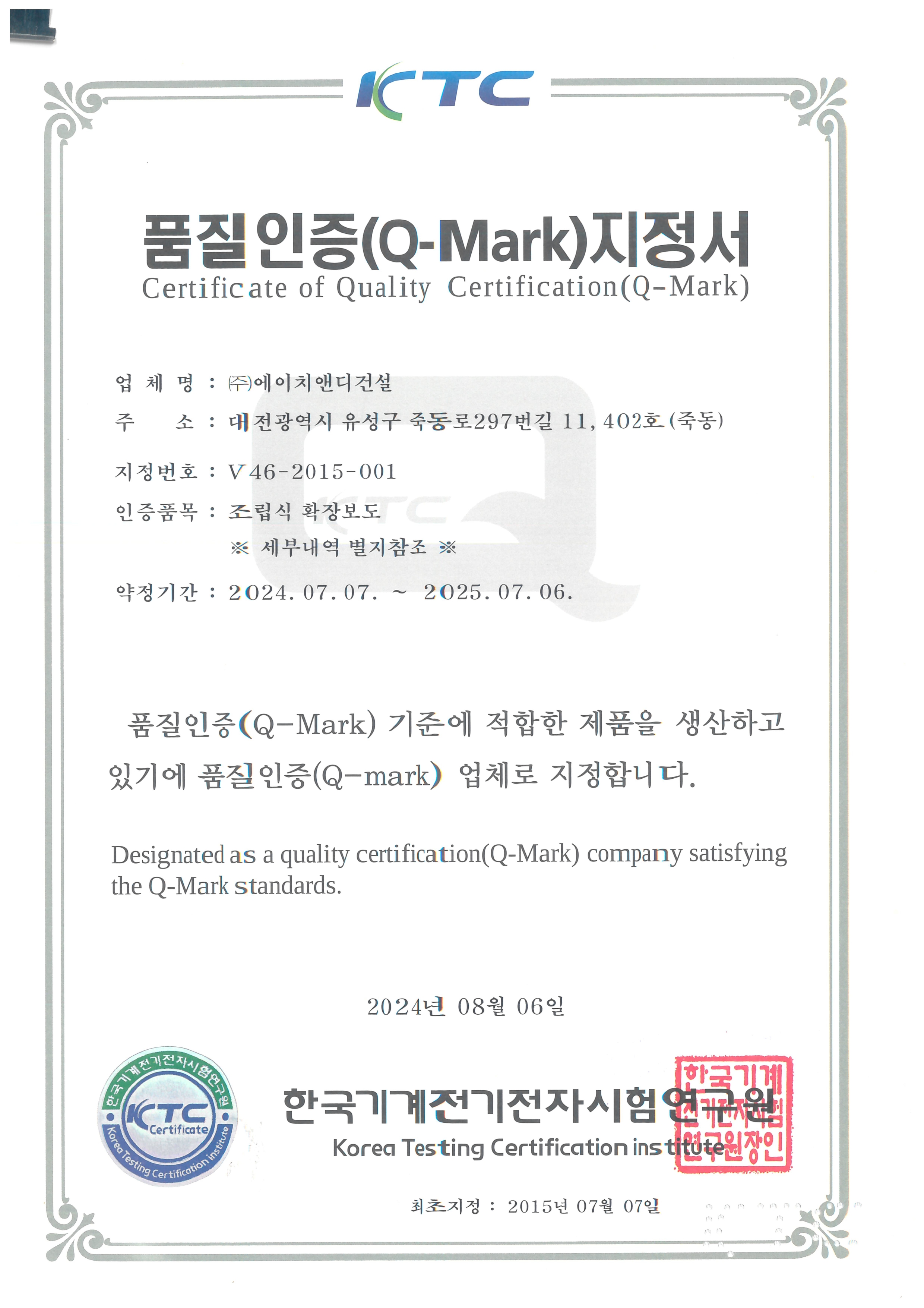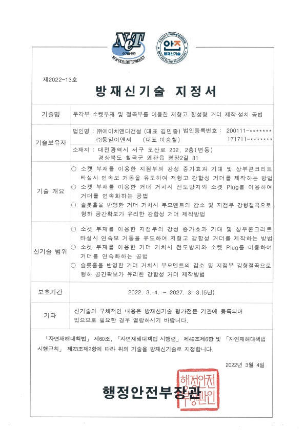 주식회사 에이치앤디건설 대표: 김민중 대전광역시 유성구 죽동로297번길 11 4층, 402호(죽동) 사업자 등록번호: 410-86-39332